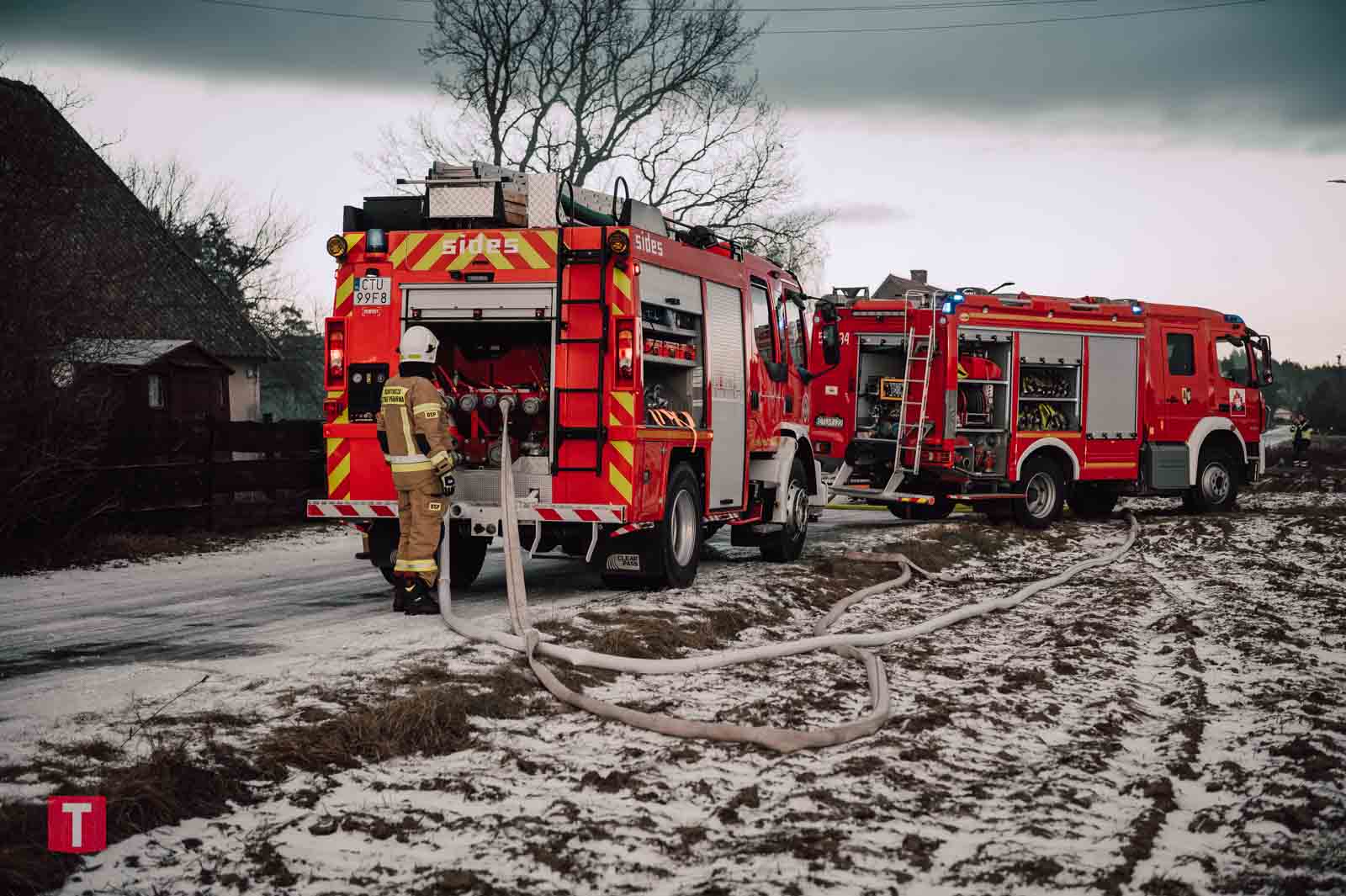 Na miejscu działania prowadziły liczne siły straży pożarnej z gminy Lubiewo oraz strażacy z Komendy Powiatowej PSP w Tucholi. Jak dowiedzieliśmy się na miejscu zdarzenia, początkowo wszystko wskazywało na pożar komina. Ogień najprawdopodobniej bardzo szybko przeniósł się na część budynku, wówczas podjęto decyzję o zaangażowaniu kolejnych zastępów straży.